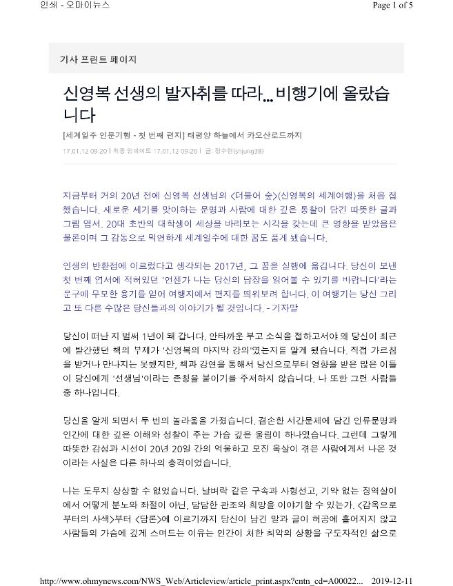 [기사] 신영복 선생의 발자취를 따라... 비행기에 올랐습니다