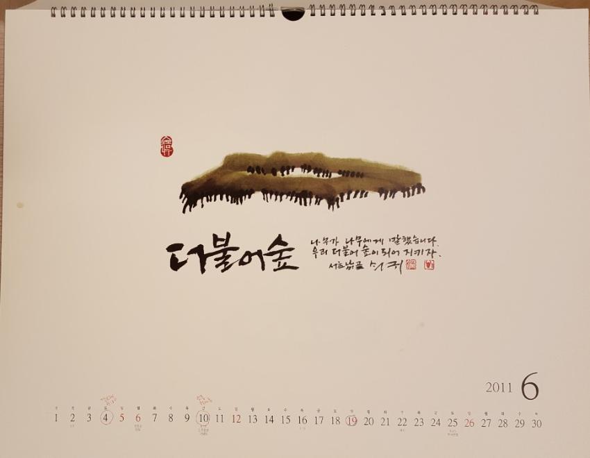 2011 신영복 서화달력(성공회대산학벽걸이1)(6월 더불어숲)