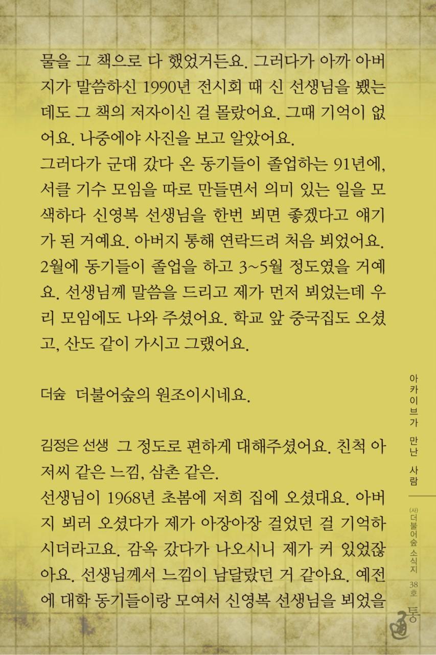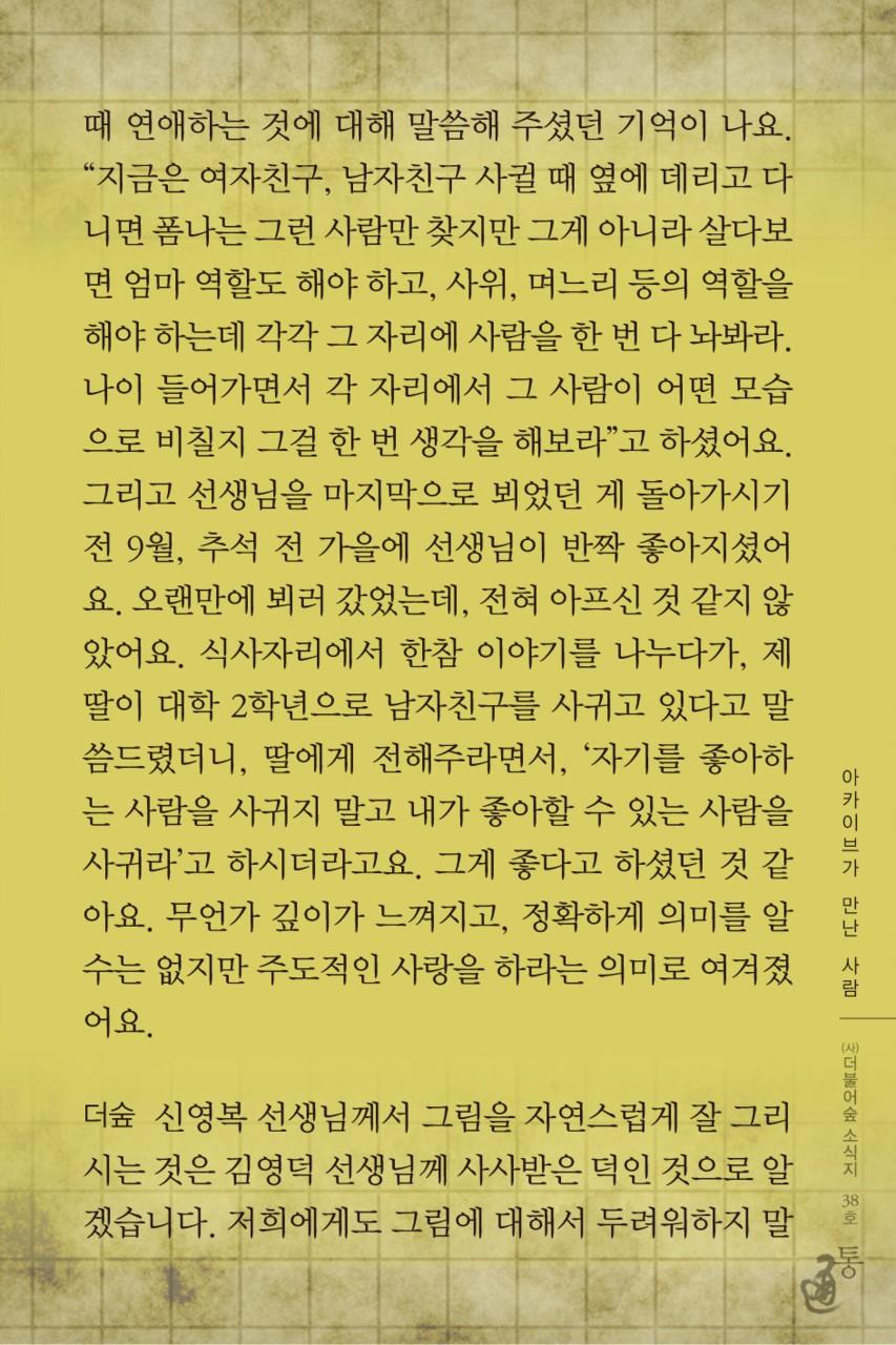 아카이브 팀은 지난 6월 21일 오후, 김영덕 화백과 그 따님 김정은 선생님을 만났습니다. 그 인터뷰 요약을 지난 달에 이어 싣습니다.