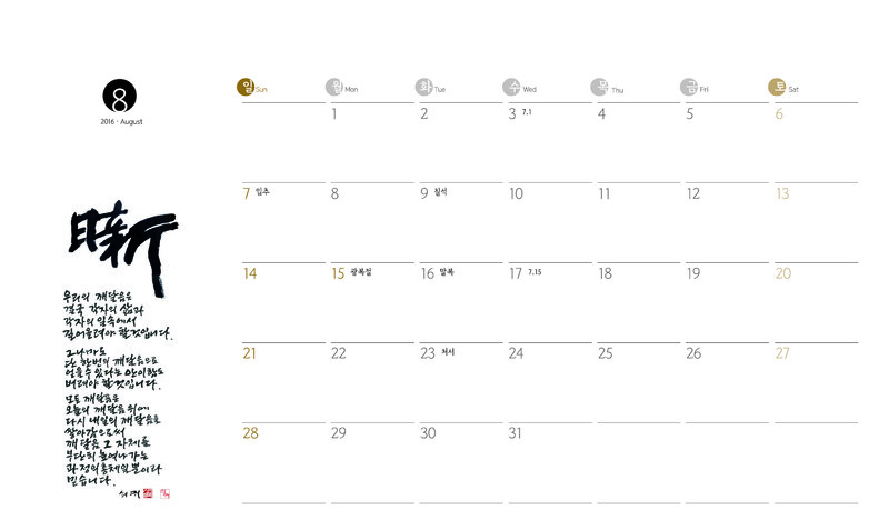 2016] 신영복 서화달력(8월 날짜표시면)