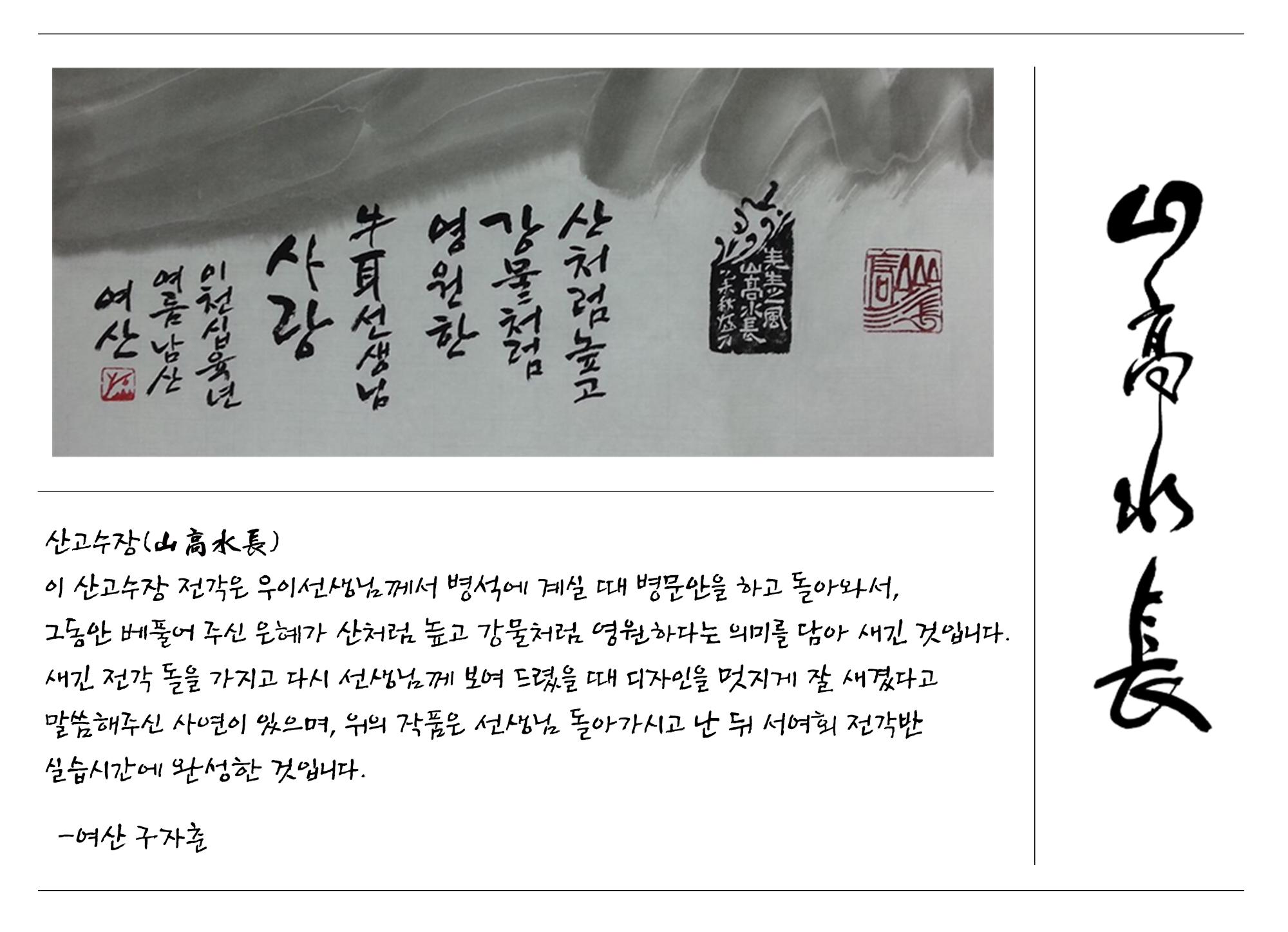 이 산고수장 전각은 우이선생님께서 병석에 계실 때 병문안을 하고 돌아와서