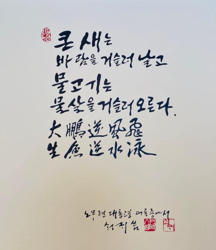 [서예] 큰새는 바람을 거슬러 날고(노무현대통령 어록)